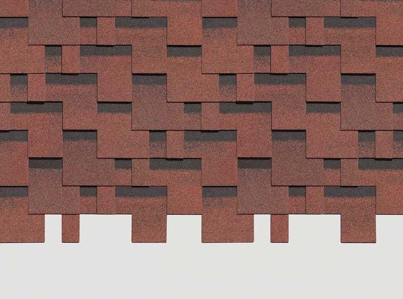 Нестандартную форму 3-лепестковых гонтов эффектно подчеркивают переходы темно-красных оттенков и матовый блеск гранулята. Затемненные участки лепестков создают реалистичный эффект тени. Кровля станет доминантой в дизайне, поэтому для оформления фасадов лучше выбирать нейтральные светлые оттенки сайдинга и фасадных панелей.
