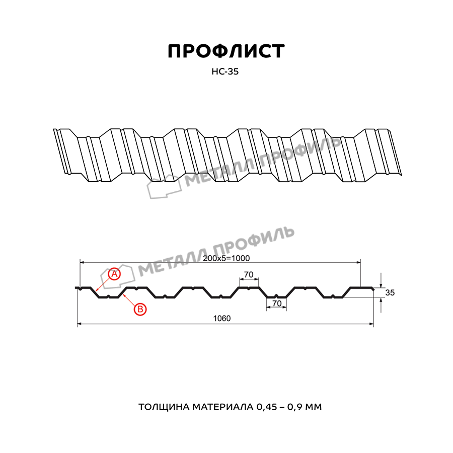 Многоцелевой и выгодный стройматериал с симметричным профилем. Маркировка НС значит, что профлист является и «несущим», и «стеновым». Он пользуется популярностью как при строительстве частных домов, так и для промышленных объектов. Из профлиста с глубиной волны в 35 мм возводятся конструкции очень разного назначения: быстровозводимые сооружения ( навесы, павильоны ), ограждения придомовых и общественных территорий, каркасные здания ( склады, цеха, торговые центры ), обустройство кровли. Хорошую способность выдерживать нагрузки НС-35 придают специальные канавки, которые расположены с обеих сторон профлиста. Рабочая ширина материала составляет 1000 мм при номинальной ширине 1060 мм, получается, что при установке этого профиля в боковой замок скроется 60 мм. Толщина металлопроката может быть выбрана в диапазоне от 0,5 до 0,9 мм – это влияет не только на механическую прочность профнастила, но и его тяжесть. Полимерно-защитный слой из каталога Компани Металл Профиль добавит материалу улучшенную стойкость к ржавению и ультрафиолету.